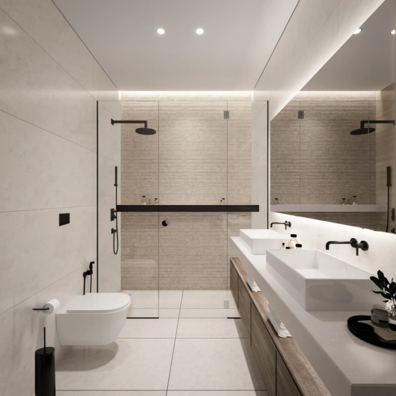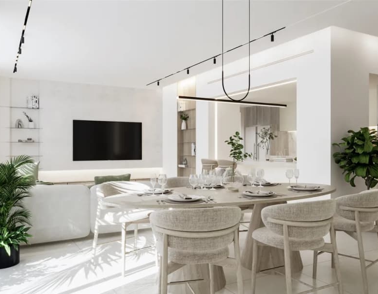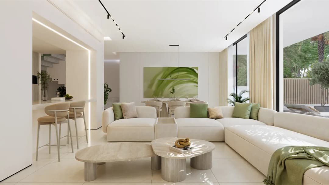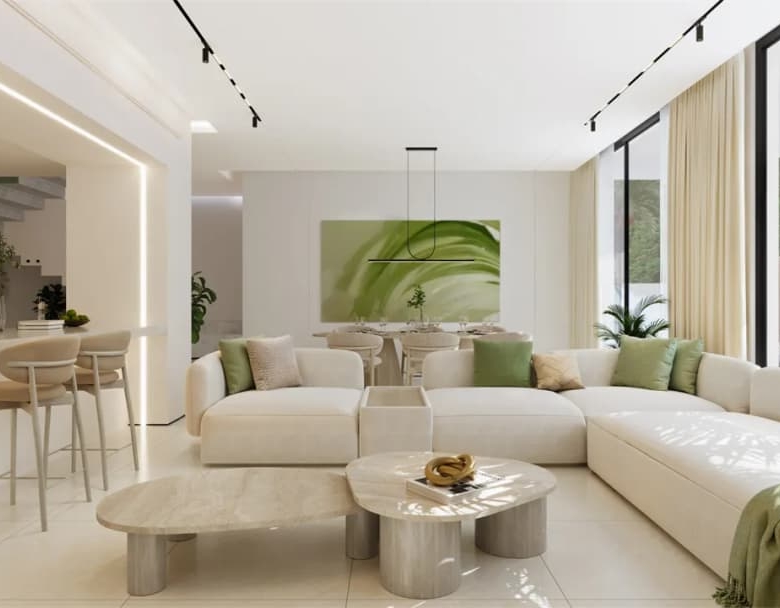 The interiors at Aila Homes are thoughtfully designed to support family life and everyday comfort. Living spaces feature floor-to-ceiling windows, sunlit interiors, and a calm, modern palette dominated by minimalist white and green tones. The townhouses are delivered without furniture, with an emphasis on high-quality finishes using modern materials. Refined detailing, functional layouts, and seamless flow between spaces create timeless interiors that balance elegance, practicality, and contemporary living.