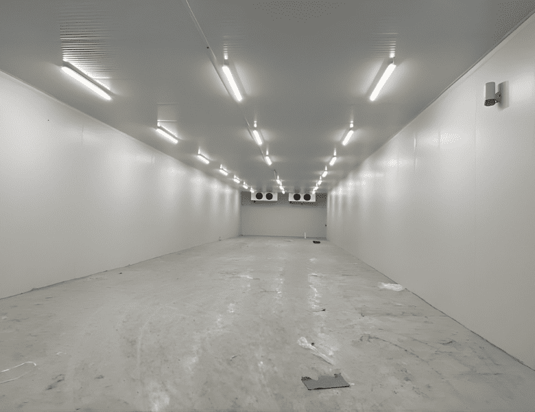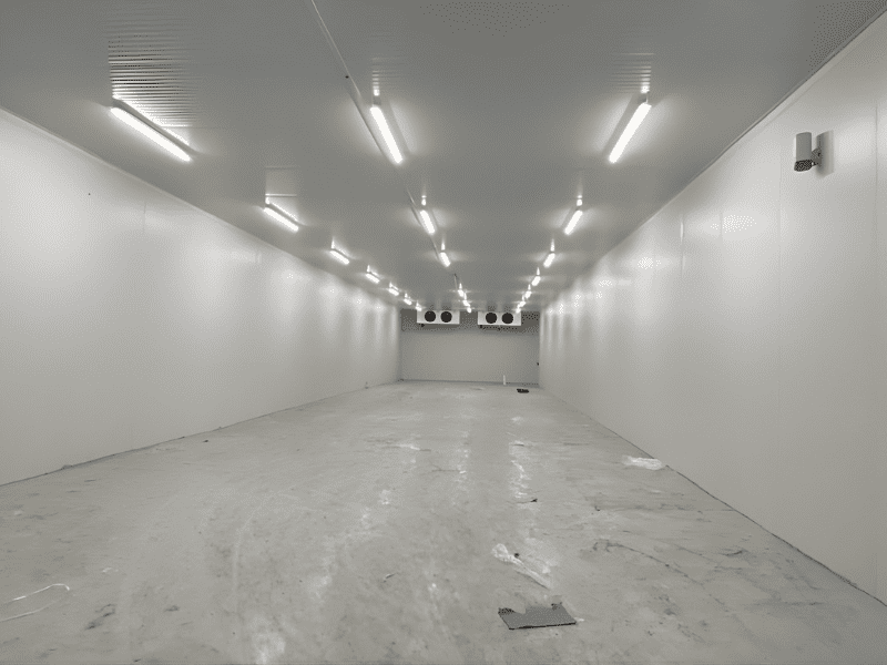 The warehouse includes a cold storage room capable of reaching temperatures down to -25°C