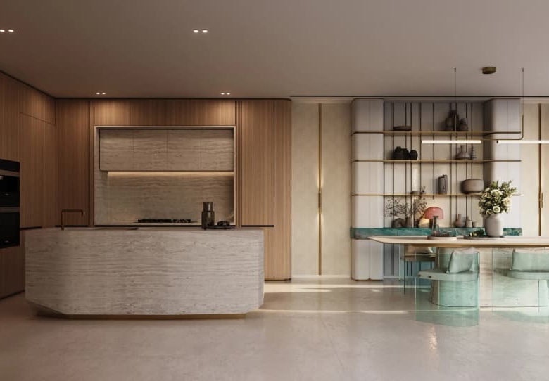 Apartments in Binghatti Cullinan feature modern finishes and high-end materials, with fully fitted kitchens, built-in wardrobes, and premium flooring. The contemporary design is complemented by elegant details in the kitchen and bathroom, providing residents with a ready-to-move-in living experience.