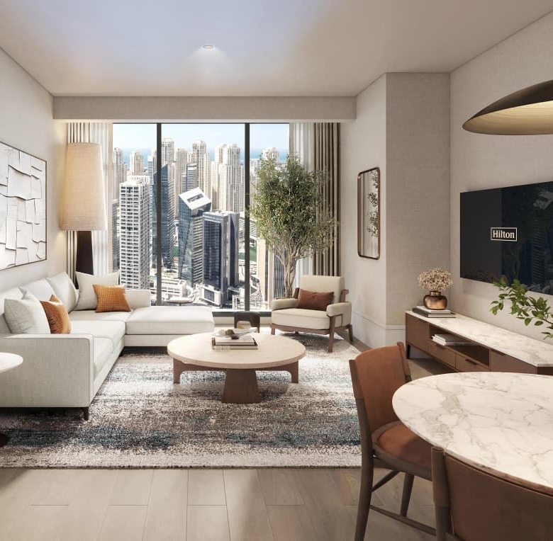 Interiors at Hilton Residences Dubai JLT are designed to reflect the brand’s signature elegance and everyday luxury. Residences feature well-planned layouts with contemporary finishes, generous living spaces, and a refined material palette. The apartments are delivered without furniture and follow a standard of high-quality finishes with modern materials, allowing residents to personalize their homes while benefiting from Hilton-inspired design principles focused on comfort, functionality, and timeless appeal.