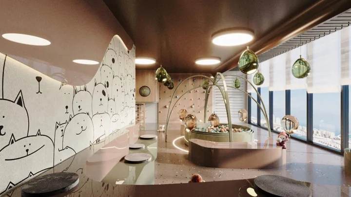 Residents enjoy a thoughtfully curated suite of amenities catering to wellness, recreation, and family life. The project features separate men’s and ladies’ gyms, a swimming pool, children’s pool, jacuzzi, splash pad, yoga area, CrossFit zone, cinema, outdoor seating lounges, padel court, kids’ play area, barbecue area, pool deck, and a dedicated fireplace lounge. These facilities create a lively yet comfortable environment where residents can unwind, stay active, and connect within a vibrant community setting.
