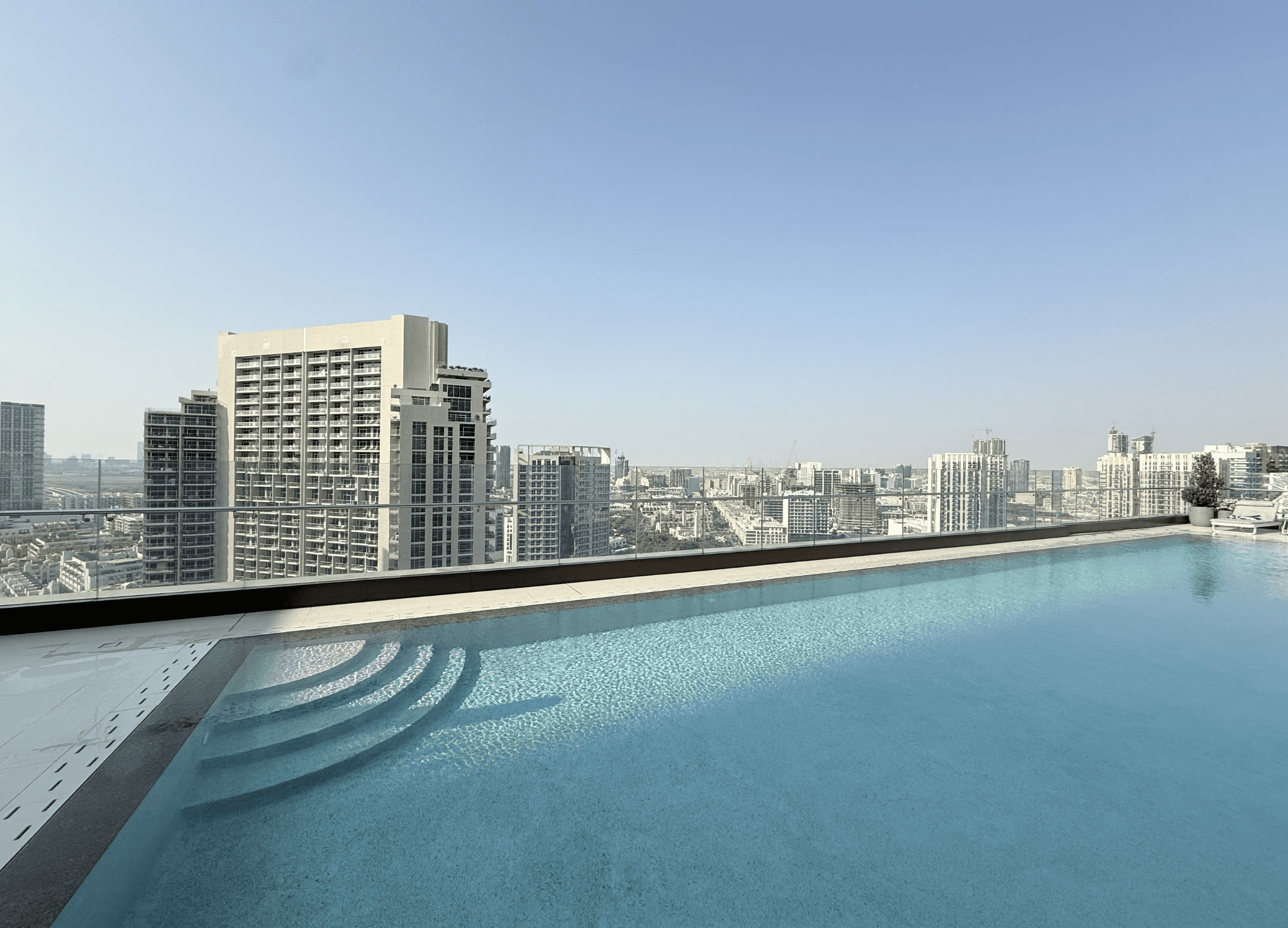 – Swimming Pools: Gender-segregated rooftop infinity pools.