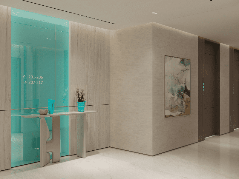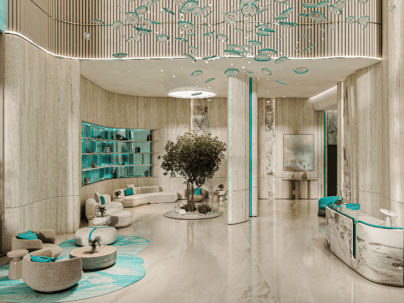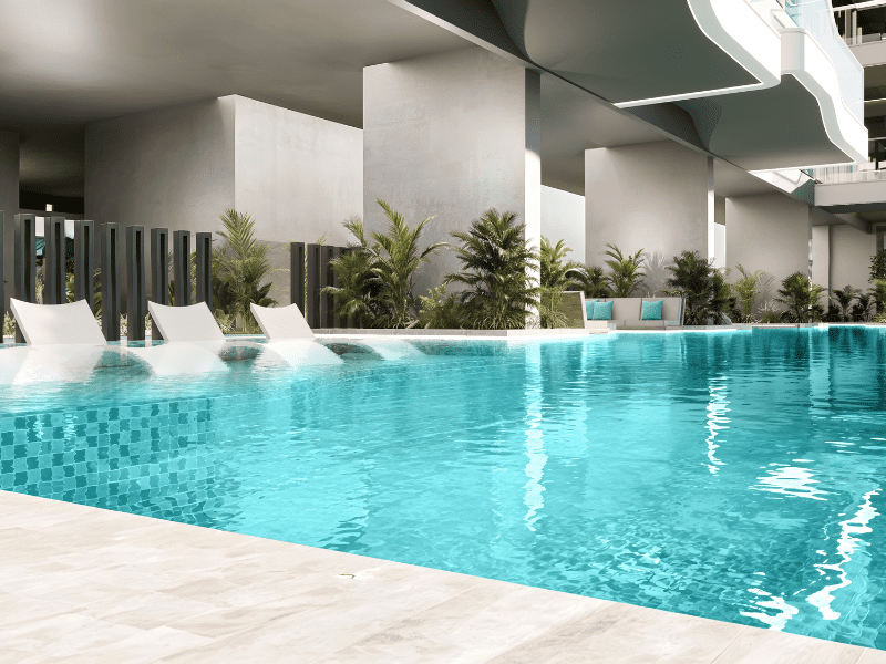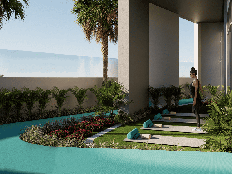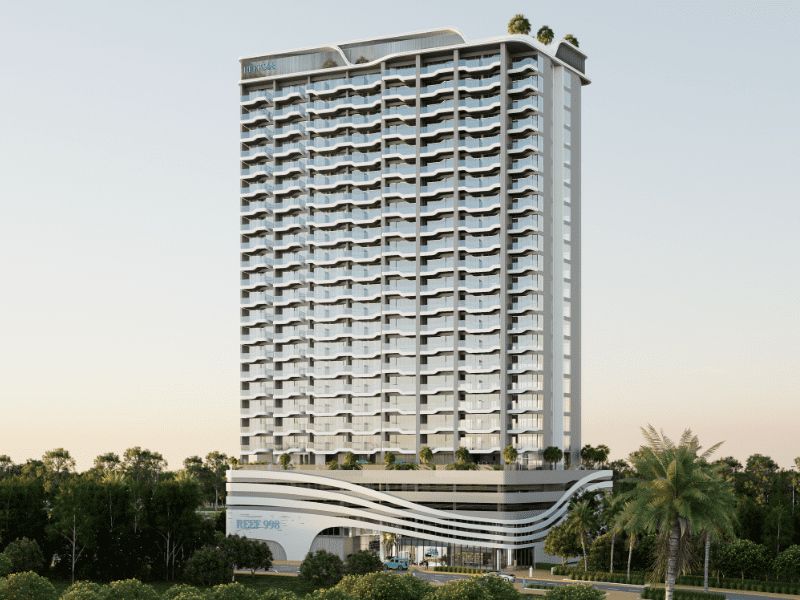Vertical Community: Unlike standard “block” apartments, Reef 998 offers over 20+ lifestyle amenities distributed across the building, from a rooftop cinema to an aqua gym.