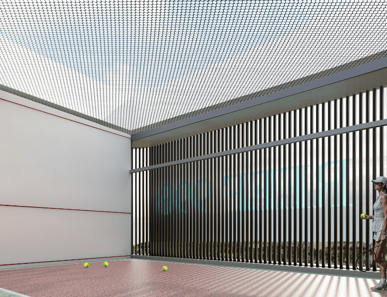 Sports & Leisure: Padel tennis, Squash courts, Cricket pitch, and a dedicated Skate park.