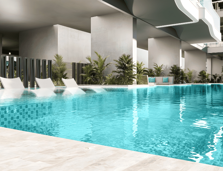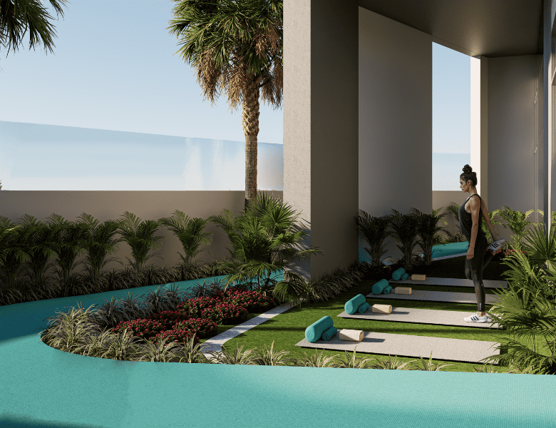 Vertical Community: Unlike standard “block” apartments, Reef 998 offers over 20+ lifestyle amenities distributed across the building, from a rooftop cinema to an aqua gym.