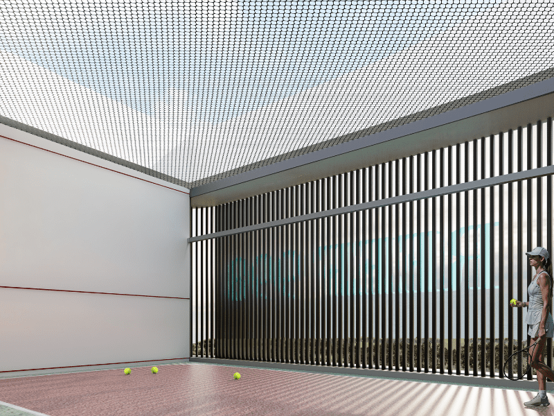 Sports & Leisure: Padel tennis, Squash courts, Cricket pitch, and a dedicated Skate park.