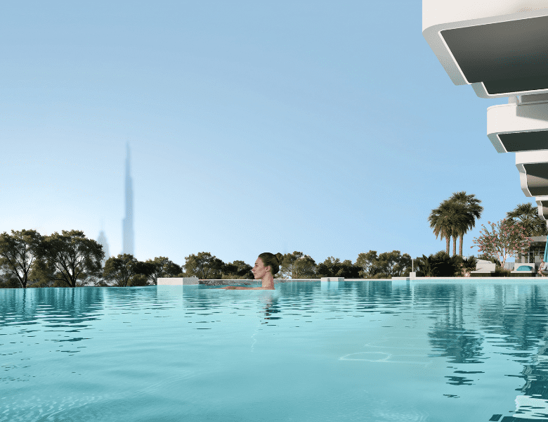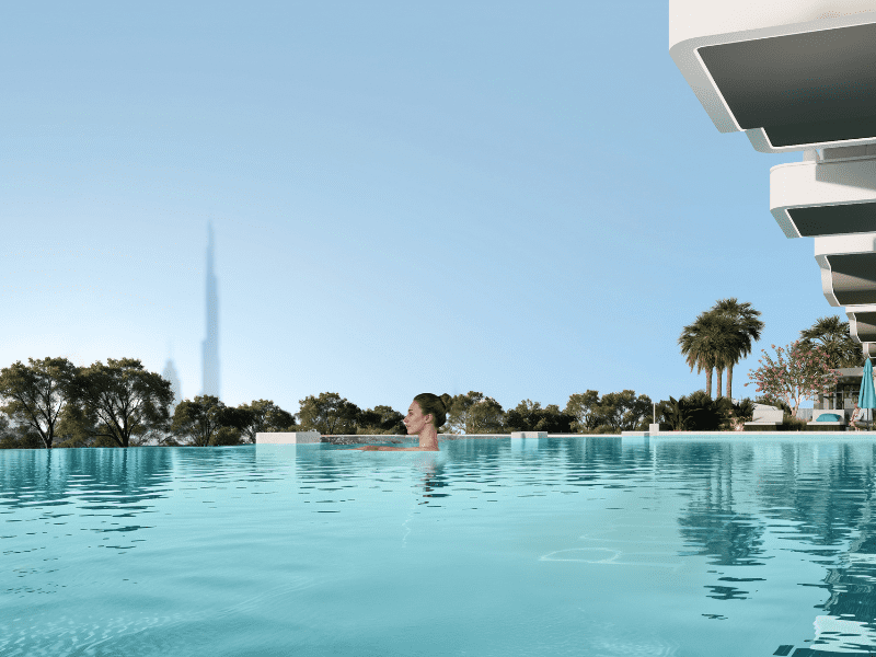 Reef 998 redefines urban luxury with a world-first innovation: Patented Sunken Balconies with integrated outdoor cooling. Located in the rapidly growing Dubai Land Residence Complex (DLRC), this 24-story architectural masterpiece blends futuristic technology with resort-style comfort, allowing you to enjoy your outdoor terrace even in the peak of the Dubai summer.